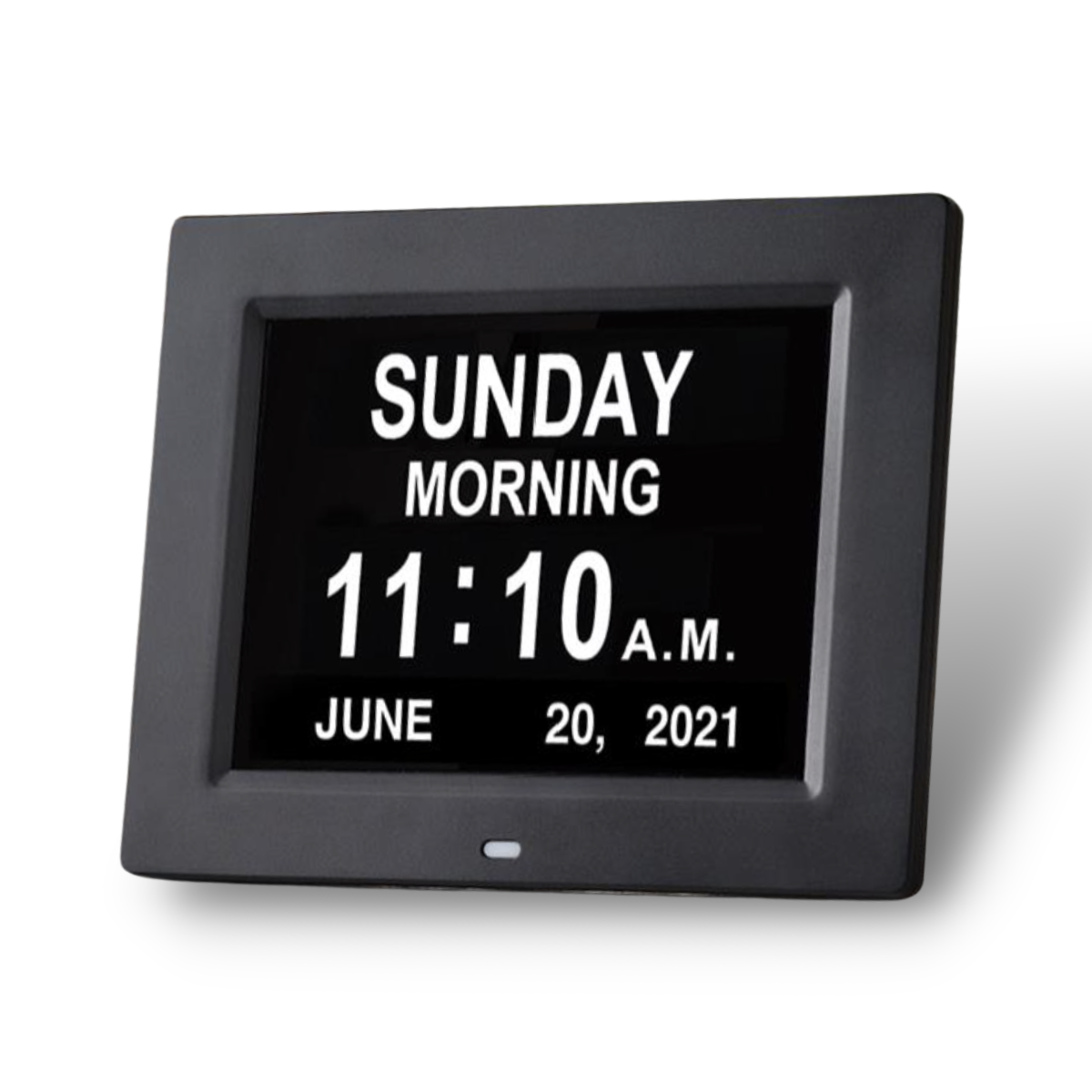 This Large Print LED Date Clock features an 8″ LED screen that displays the time in big numbers and completely spells out all dates, making it easier for people with low vision to read and understand. The high contrast white on black LED display provides good contrast for viewing.