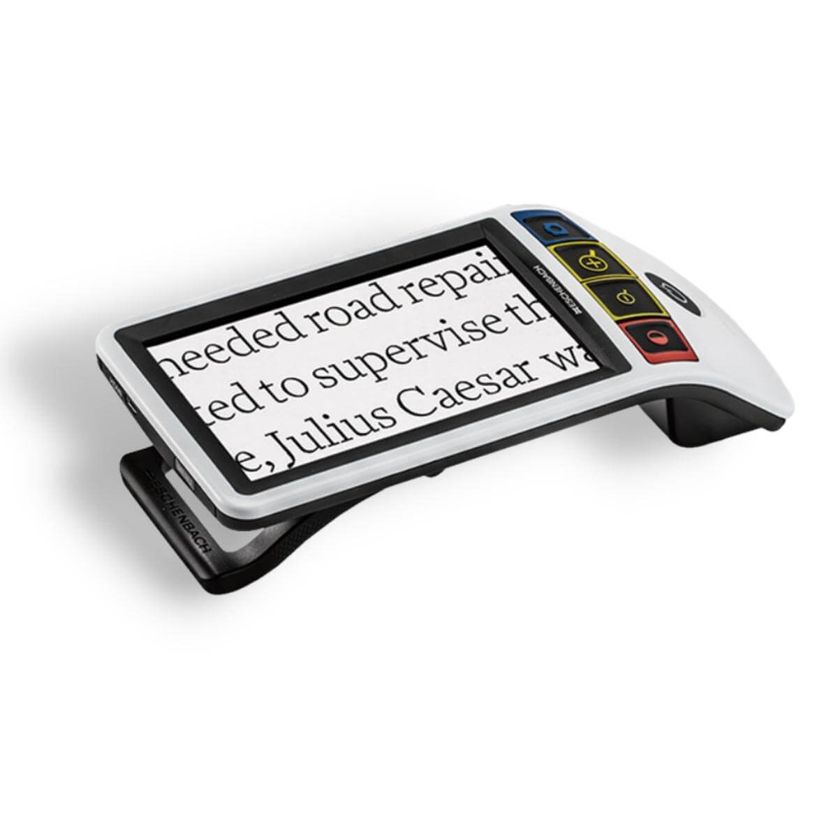 The new Smartlux Digital is an ergonomically designed, portable video magnifier with full HD camera that features a 5” reflection-free display, large field of view and personalized setting options. The LEDs are individually adjustable and a new customizable menu provides 14 color contrast mode options, adjustable lines and blinds and more. The new Smartlux Digital has an easy-to-use interface with four color-coded tactile control buttons and provides a customizable reading and writing solution for those who are visually impaired. The integrated stand allows for 3 different uses: fully retracted for hand-held use, fully extended for placing on reading material and partially extended for writing under the display (0.9x – 4.6x when in writing mode).